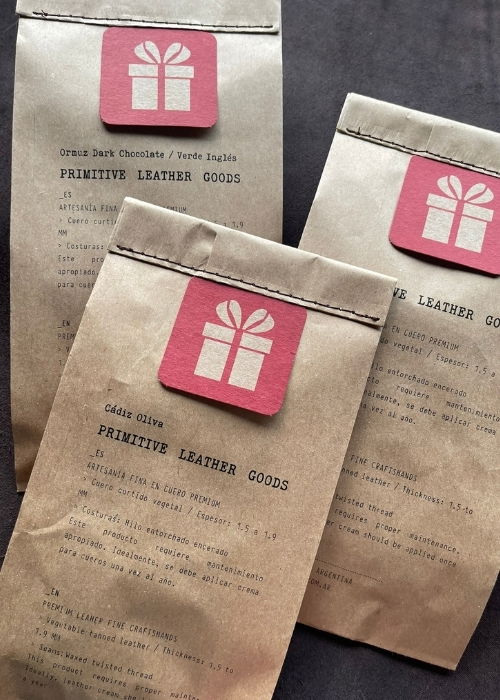 - Producto envuelto en papel de seda con sticker